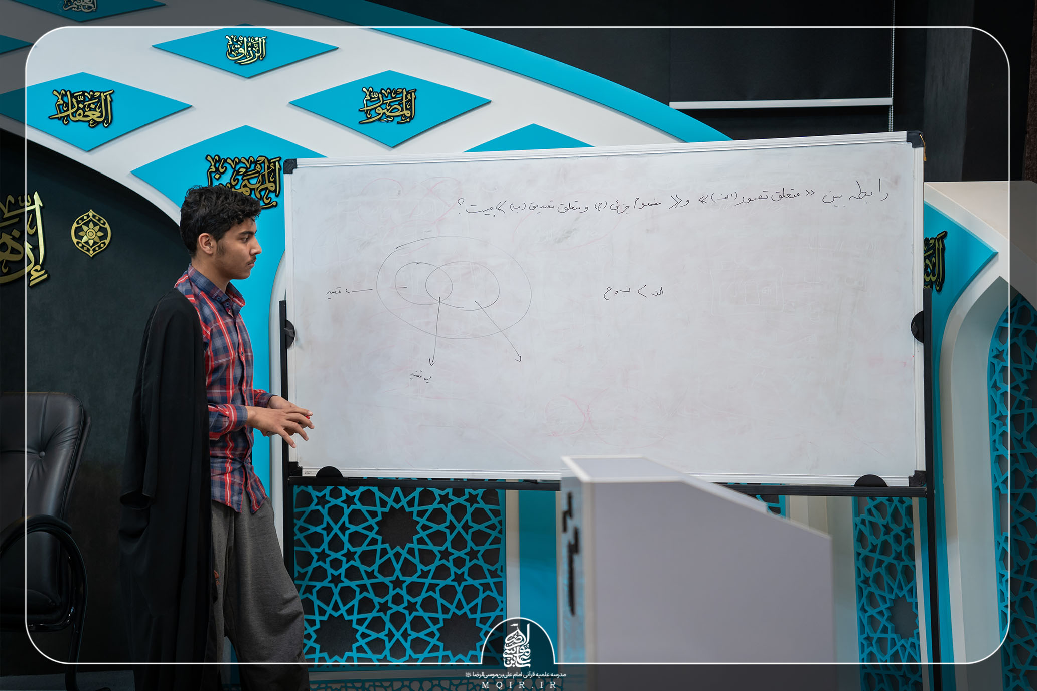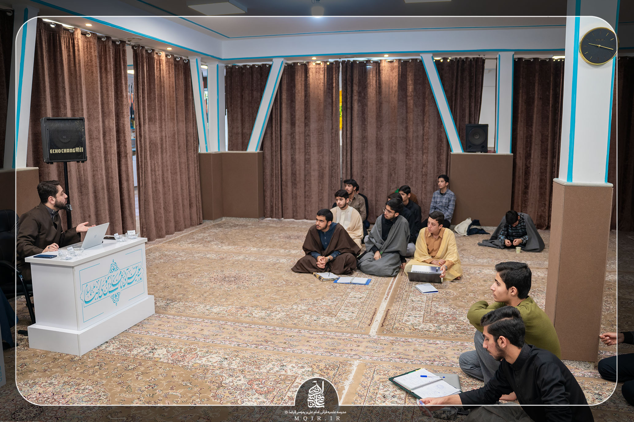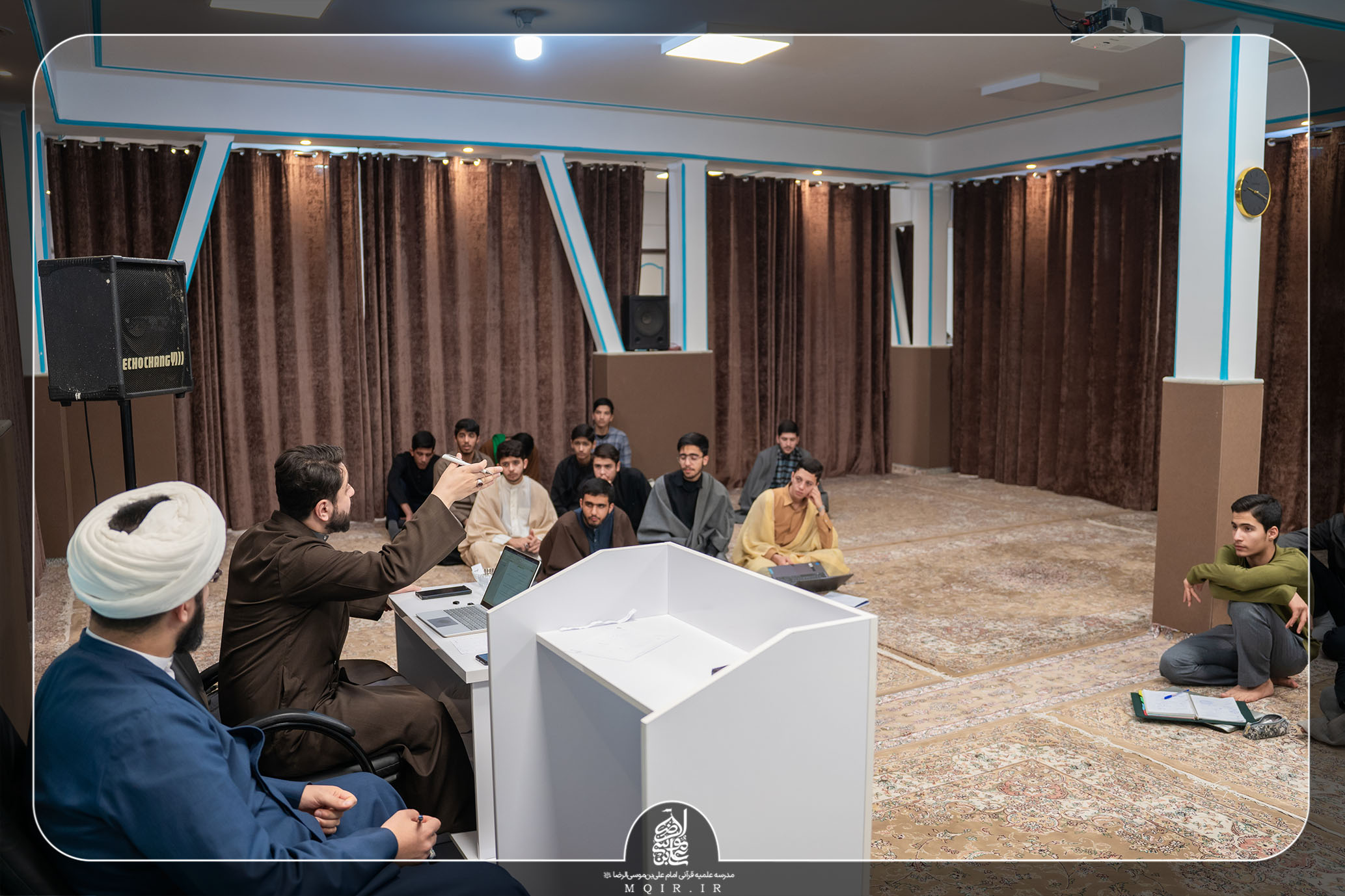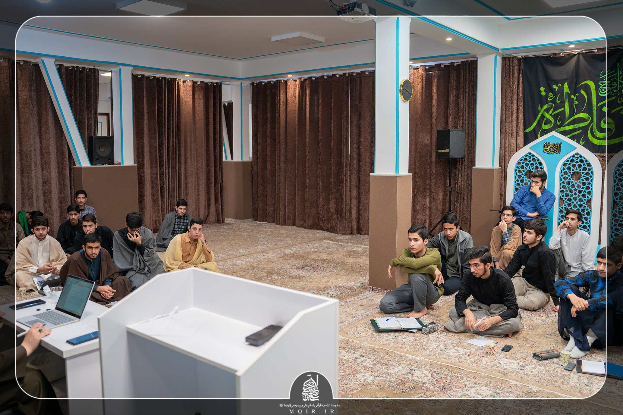 در این برنامه جذاب و در عین حال رسمی که با حضور اساتید مدرسه و مسئولین آموزش اجرا شد، طلاب مدرسه از پایه‌های اول، دوم، سوم و چهارم، هرکدام به دو گروه تقسیم شده و به طراحی سؤالات مهم به‌صورت گروهی پرداختند.
