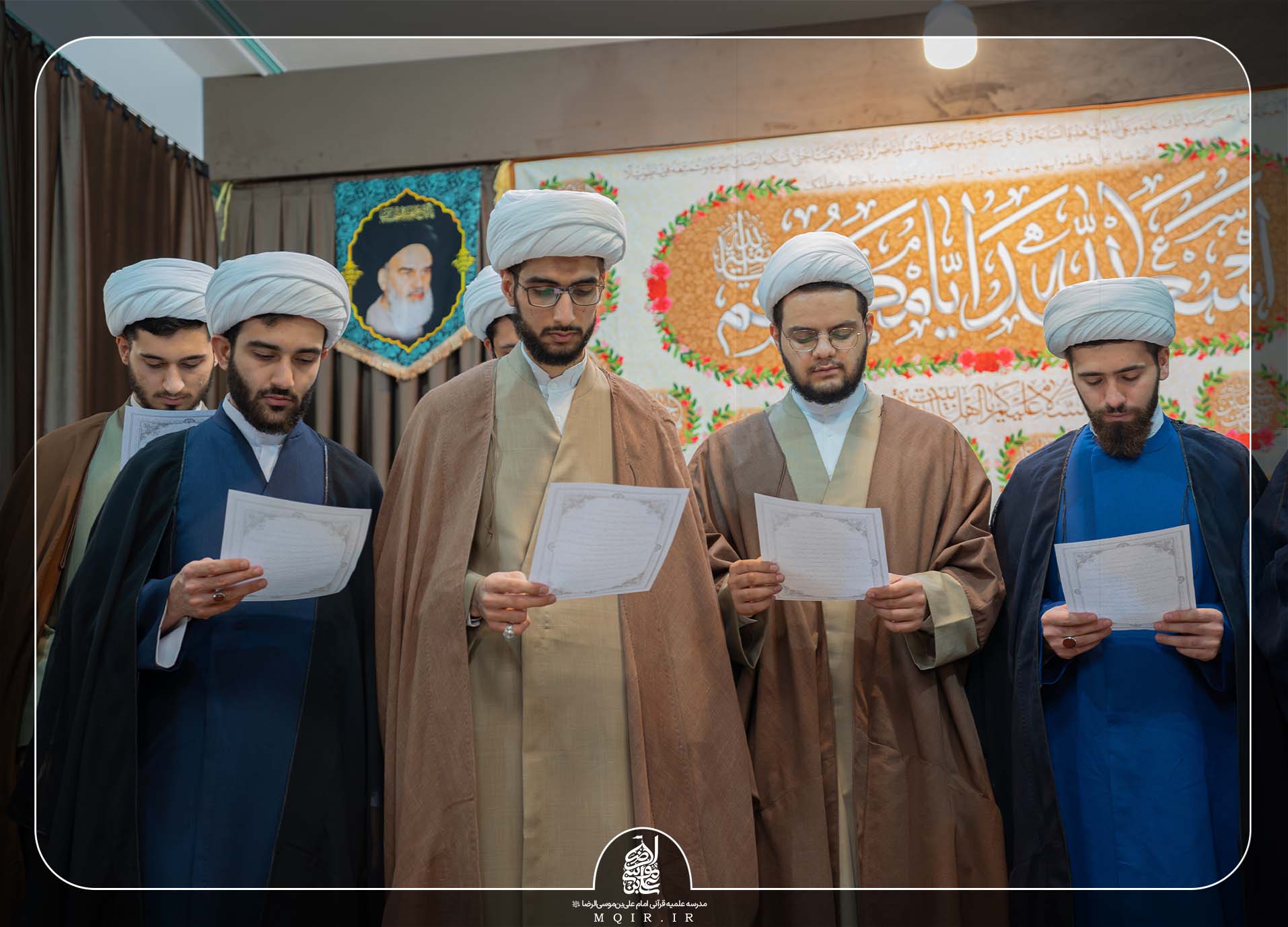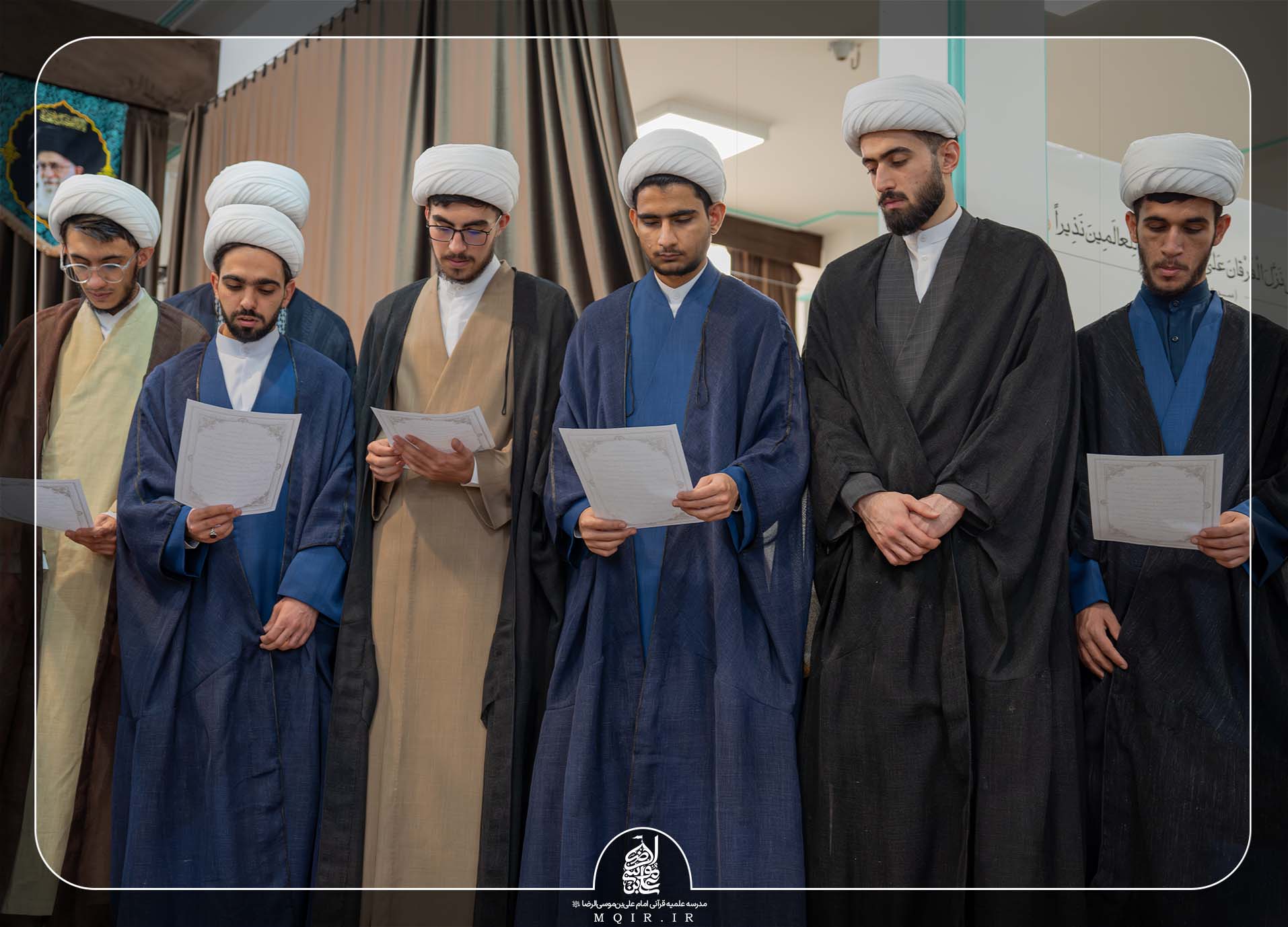 در روز 5 اسفند امسال، مصادف با 14 شعبان، طلاب پایه شش و هفت مدرسه علمیه قرآنی امام علیبن موسی الرضا (علیهالسلام) در پیشگاه حضرت ولیعصر (عجلالله فرجه الشریف) و توسط دستان پربرکت آیت الله شب زنده دار (دامت برکاته)، ملبس به لباس مقدس و والای طلبگی شدند.