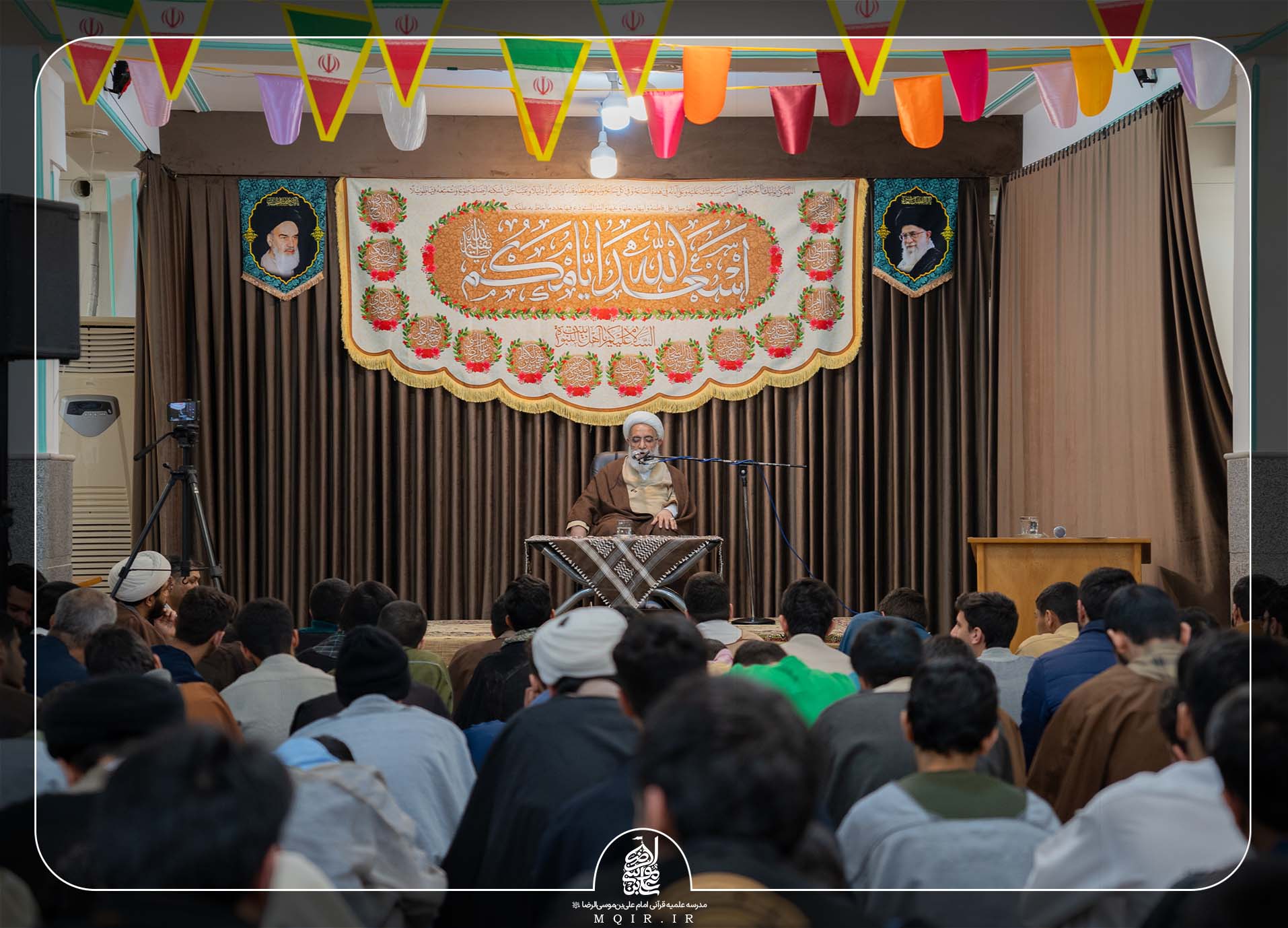 آیت الله شب زنده دارد (دامت برکاته) در ضمن این مراسم، نکات ارزشمند و حائز اهمیتی را درباره حضرت صاحب الزمان(عج)، طلبگی و اهمیت تلبس فرمودند. طلاب مدرسه در این مراسم شرکت داشته و از بیانات استاد بهره بردند.