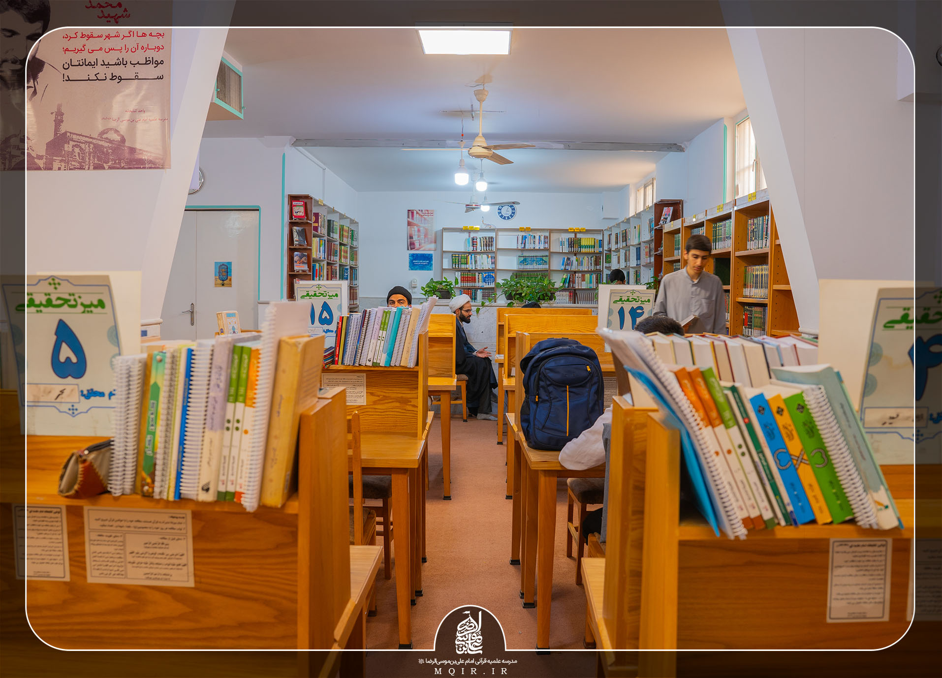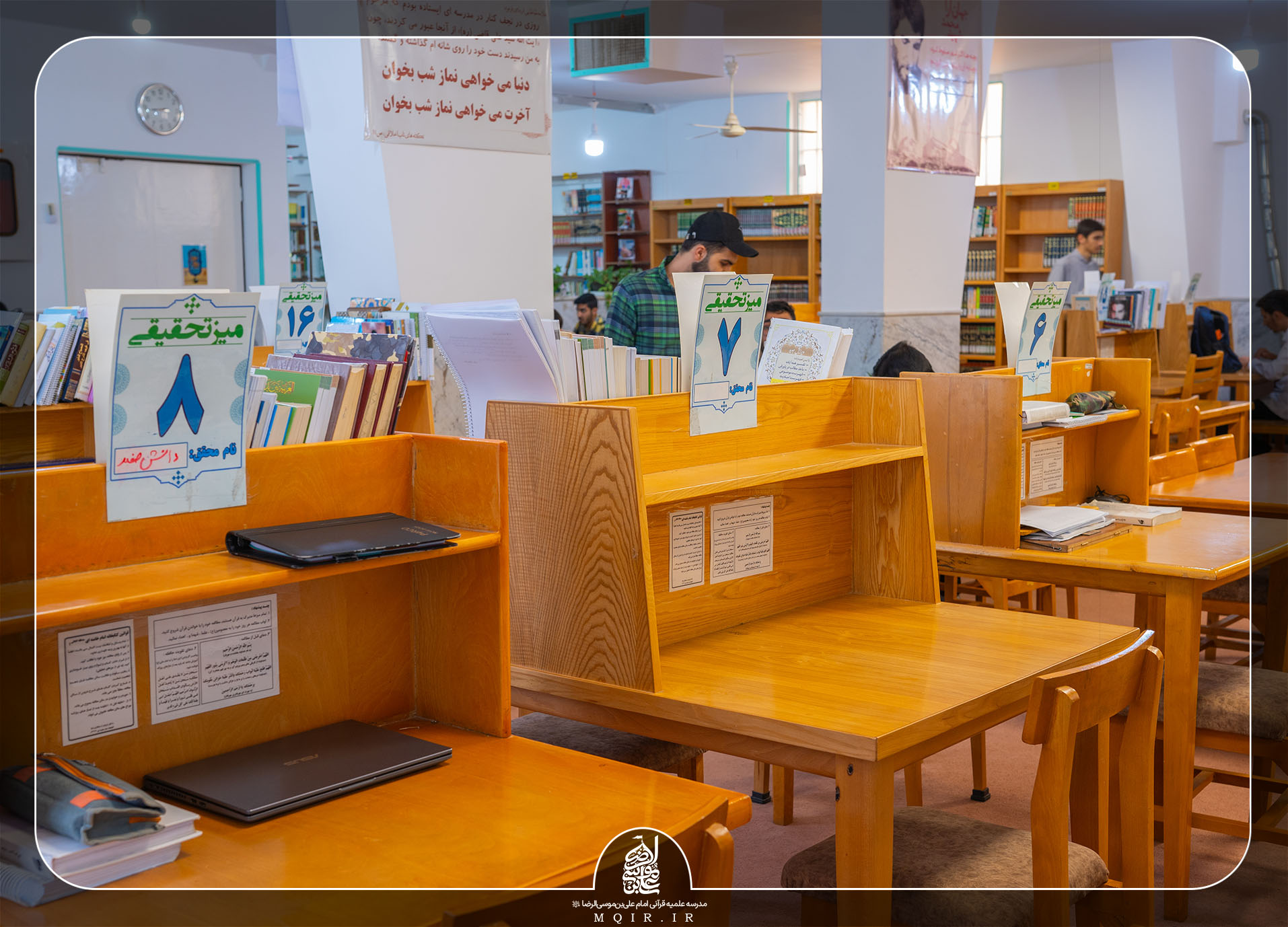 لازم به ذکر است با توجه به ضرورت رعایت نظم و ظاهر مرتب و شکیل کتابخانه، بقیه طلاب موظف هستند در پایان هر روز لوازم و کتاب های خود را از روی میزها جمع آوری نمایند.