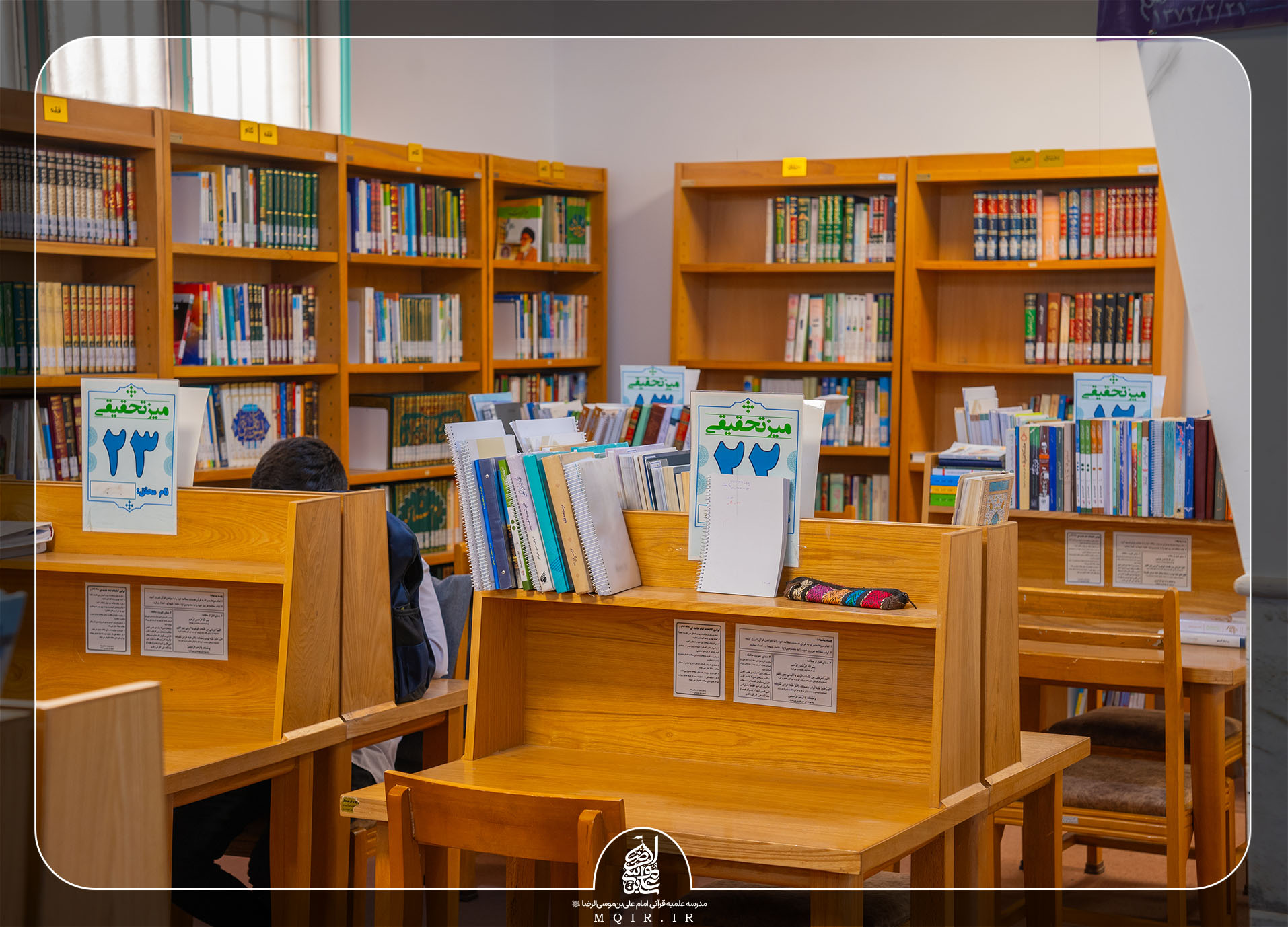 • تهیه میزهای مطالعه دو و چهار نفره تا هر طلبه ای متناسب با علاقه خود میز مطالعه اش را انتخاب نماید.