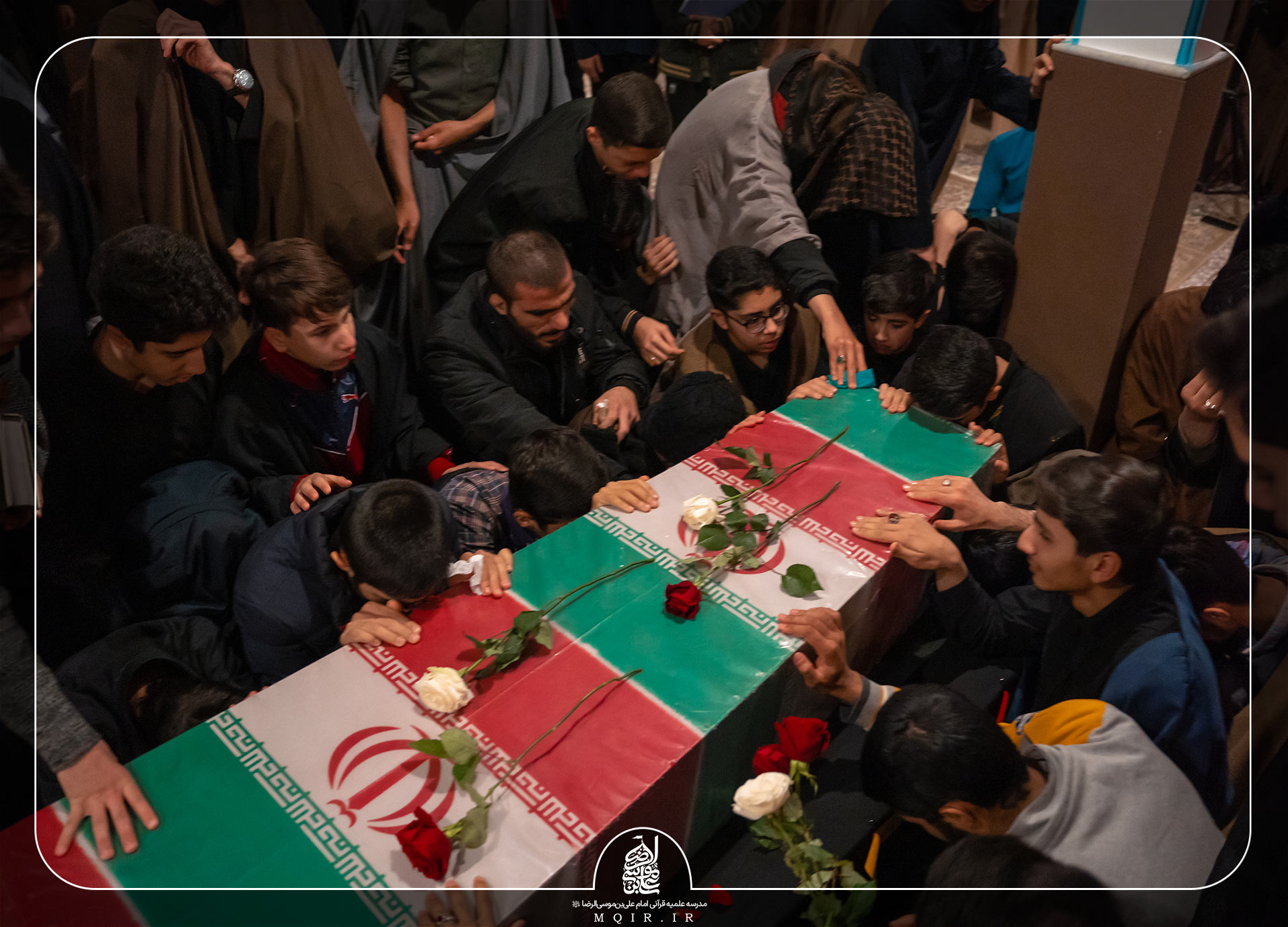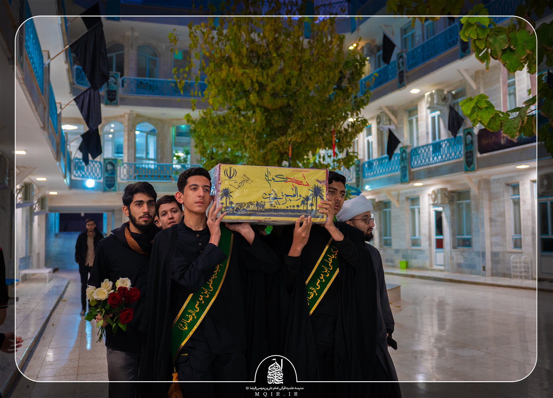 شهید گمنام، مجلس خودمانی طلبه‌های مدرسه را منوّر‌ کرد. تابوت مقدس این شهید عزیز گلباران شد و اشک و ناله در پای این دسته گل پرپر شده به برکت نوای گرم مداح جلسه بلند گشت.